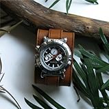 THE "NEWPORT" 2" WIDE CHESTNUT BROWN LEATHER WATCHBANDThis watchband is made from premium grade aged top grain leather brown leather (beautiful, rich color), patterned after the early aviation style watch bands. 3/4" nickel silver buckle. Fits wrist sizes 7" to 8 1/2". (Larger and smaller sizes watchbands available) Fits watchband size 3/4" to 7/8" (post width, where watchband connects to watch), watch length 1 3/4" (most common size in men's watches) watch face, wristband, post to post. Watchband comes with 2 double shoulder 3/4" spring bar attachment pins. (Larger size pins available, up to 15/16"). Price is for one leather watchband with spring bars, **WATCH IS NOT INCLUDED**. Great watchband to wear, and the more you wear it the better it looks. 100% top grain leather. Built to last a lifetime. Made in the USA. Gallery quality artifact reproductions and leather works since 1987...
